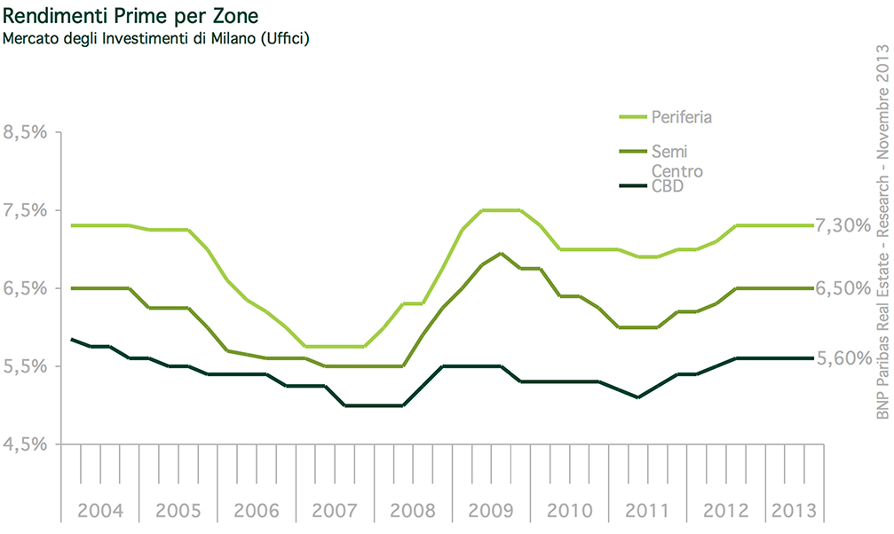 Il ritorno degli investitori stranieri potrebbe indicare che la correzione dei prezzi sia finita, o vicina alla fine. In realtà, questo è vero soltanto in parte. Infatti, quello che si osserva è che i prodotti prime sono ancora offerti con dei rendimenti bassi e questi riescono ad essere raggiunti, come è stato registrato in alcune transazioni negl’ultimi dodici mesi. Al contrario, i prodotti secondari hanno ancora molta difficoltà a trovare un compratore in quanto i loro proprietari richiedono ancora dei rendimenti considerati troppo bassi.