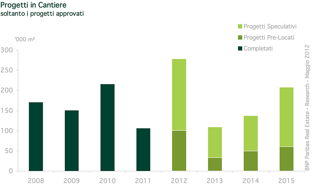 Altri progetti sono attesi sul mercato nei prossimi mesi, che dovrebbero spingere il volume dello sfitto oltre la soglia dei 1,5 milioni m². Soltanto nel 2014 il livello dell’offerta dovrebbe stabilizzarsi.