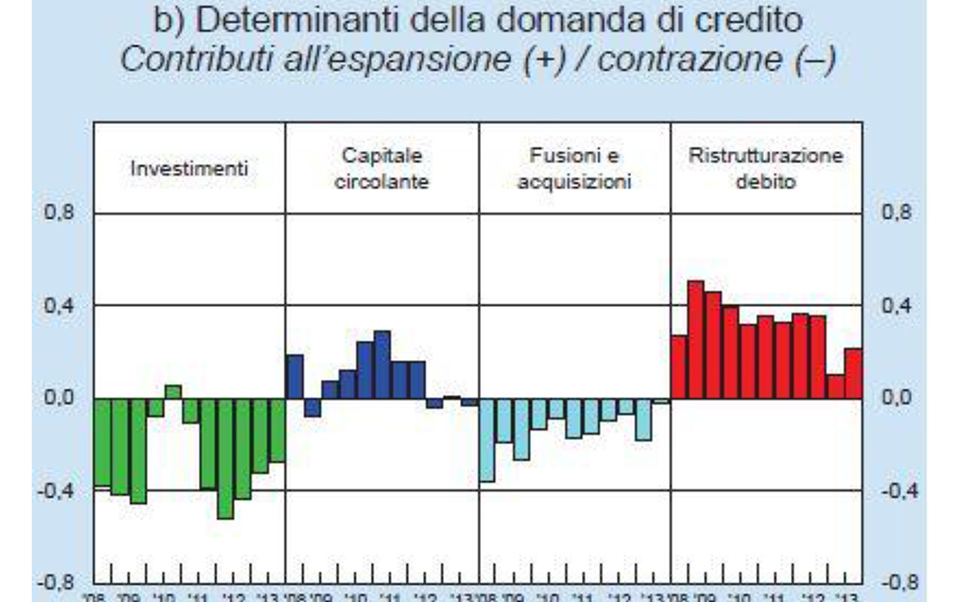 La debolezza degli investimenti produttivi si è riflessa nell’andamento dei prestiti a medio e a lungo termine, in calo a giugno dell’8,7 per cento (-10,0 per cento nel 2013).
