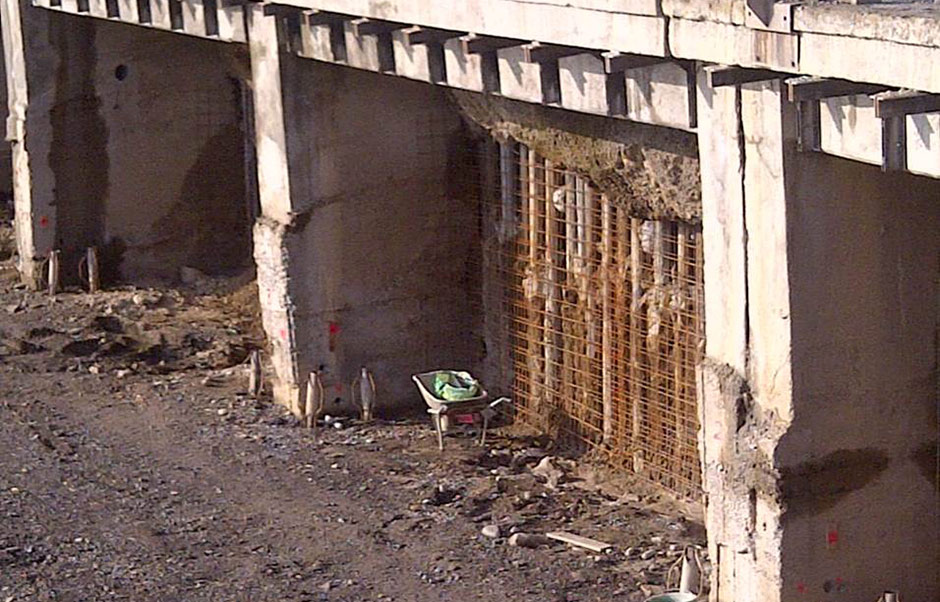 Alla luce della pessima condizione dell’intradosso della soletta esistente e delle travi, si è deciso di rimuovere tutte le parti friabili, incoerenti ed in fase di distacco mediante idrosabbiattura e picozzatura delle armature ossidate con rimozione di tutte le parti di copriferro ammalorate e sfarinate; una volta eliminate tutte le incoerenze si è provveduto alla pulizia del sottofondo per eliminare eventuali polveri rimaste; successivamente, dopo un’accurata spazzolatura, è stato applicato a pennello un prodotto anticorrosivo e la protezione dei ferri di armatura; infine, in seguito ad un minuzioso lavaggio della zona di intervento è stata ripristinata la struttura in c.a. con malta cementizia tixotropica, avente elevate caratteristiche meccaniche.
