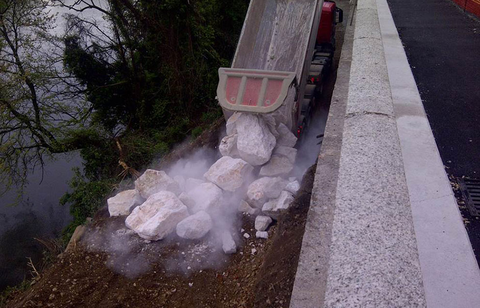 La rimozione del pacchetto stradale, che ha comportato la chiusura della strada con tutte le problematiche connesse, di fatto ha messo a nudo la geometria della soletta esistente, oltre a permettere di dar corso alla idrodemolizione della trave portante lato Adda.