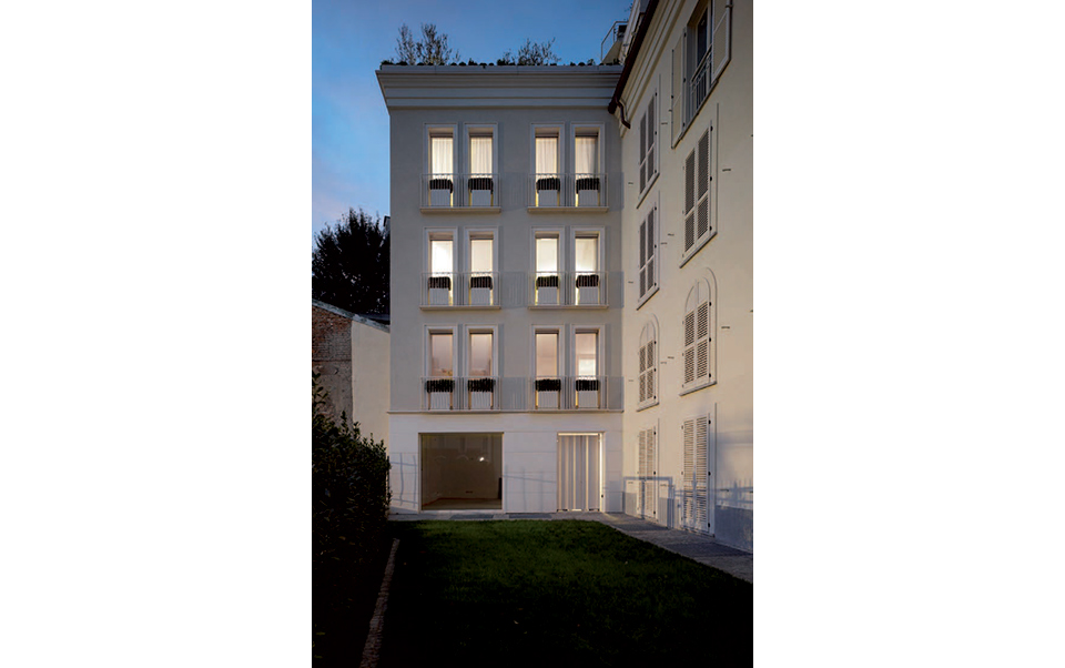 Questo nuovo edificio residenziale, compreso tra due fabbricati, è un piccolo palazzo privato di città che...