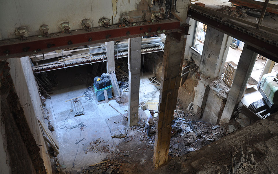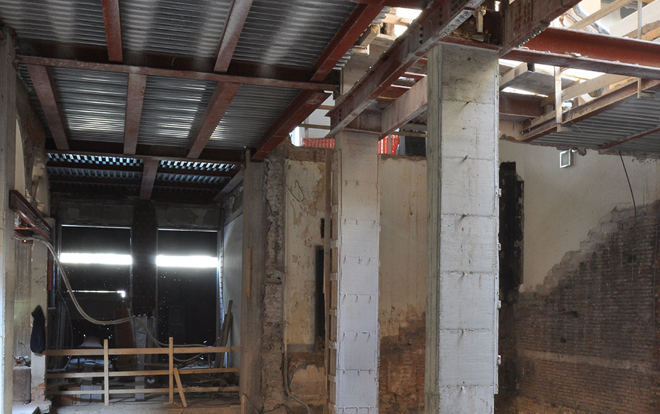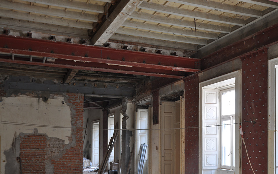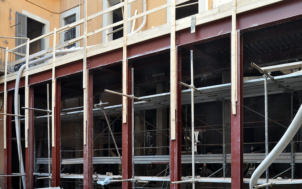 Nell’attuazione del programma generale di intervento si sono effettuate in corso d’opera le necessarie verifiche strutturali con sondaggi esplorativi resisi possibili a seguito delle rimozioni di arredi e contropareti presenti nei locali. È stato possibile identificare la presenza di doppi tavolati, canne di esalazione non più in esercizio ed elementi strutturali realizzati dai precedenti locatari tali per cui si è constatato che alcune porzioni di murature, anche se di consistente spessore, non assolvono più ad alcuna funzione strutturale.