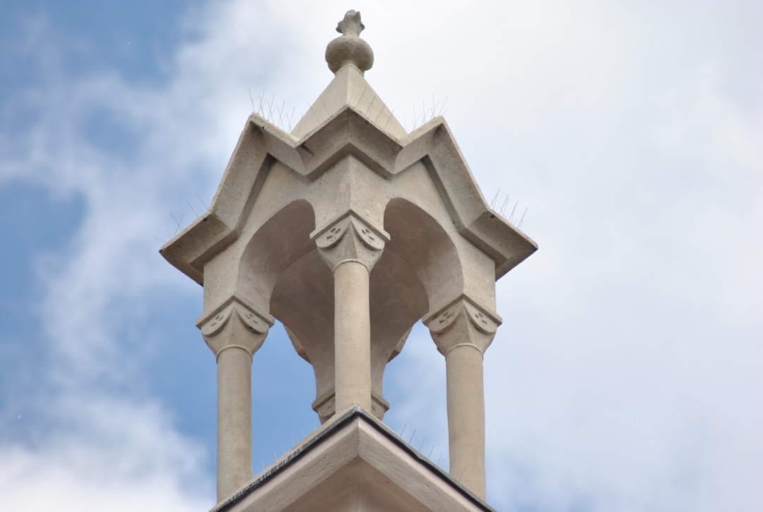 • paraste, formelle e dentelli decorativi, pronai in lapideo artificiale: esecuzione di messa in sicurezza provvisoria e successiva fermatura degli importanti sollevamenti, fessurazioni e distacchi dal paramento murario attraverso applicazione di barre elicoidali in acciao inox di diametro mm.8 e lunghezza mm.800/1000