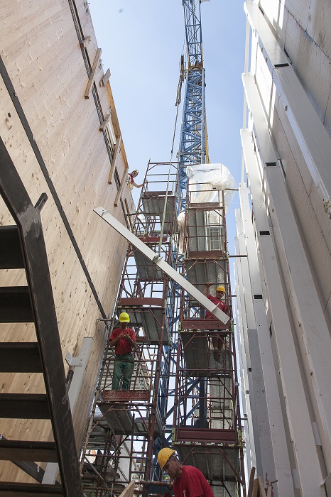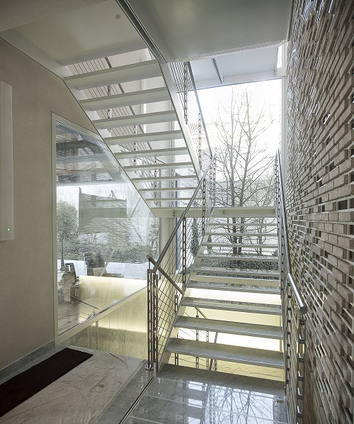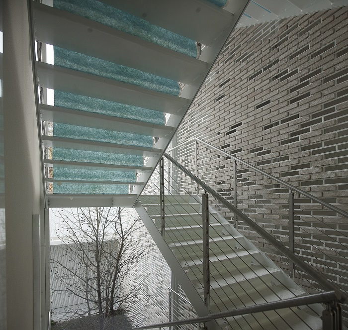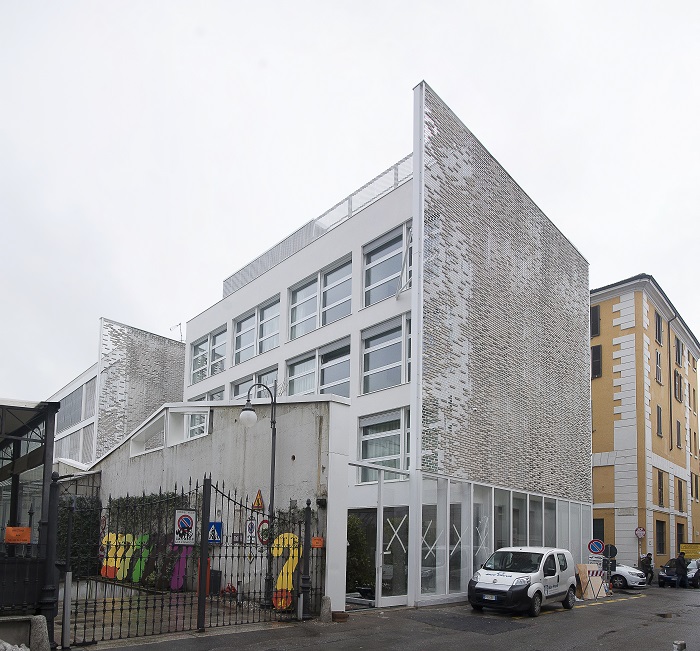 La facciata ad angolo tra Via Forcella e Via Bugatti, è invece composta da una struttura di metallo sulla quale sono stati inseriti dei mattoni a vista. Sice Previt ha prodotto e ingegnerizzato il sistema della facciata, studiando il montaggio e fissaggio dei mattoni sulla struttura in metallo ed effettuando delle prove di resistenza a fattori atmosferici e di durabilità nel tempo.