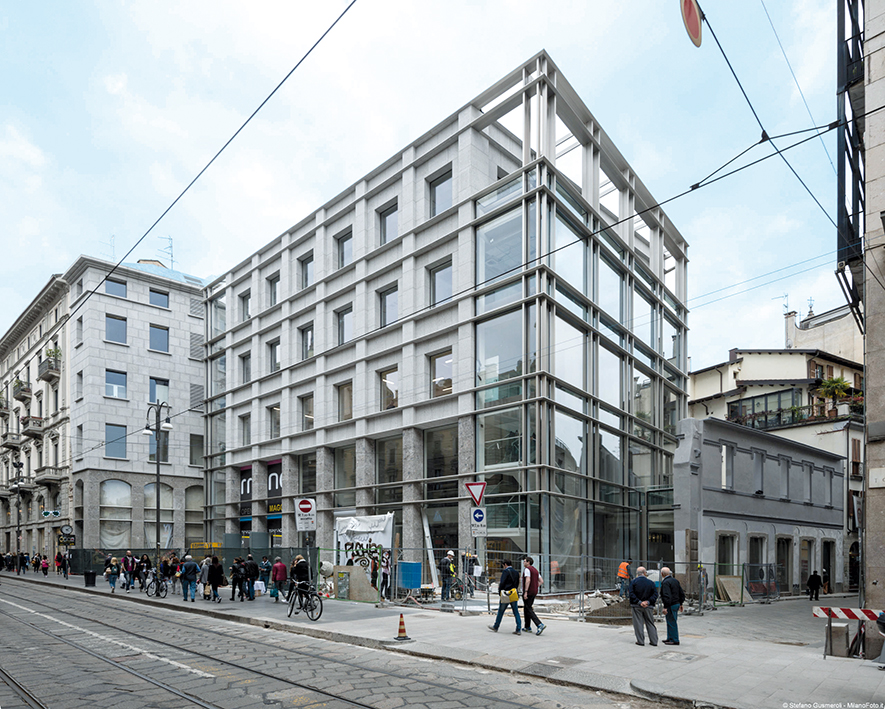 I prima e il dopo della costruzione situata a Milano, tra via Torino, via della Palla, 3 e via Lupetta 8 e 10, realizzata dalla impresa milanese Grassi&Crespi Srl per Volare Srl. Si tratta di un immobile, di cui sono state restaurate le facciate preesistenti, composto da appartamenti, da 2000 mq di uffi ci, da 3000 mq di attività commerciali e da 90 boxes interrati. I lavori (2011-2015) sono costati 10 milioni e 800 mila euro.