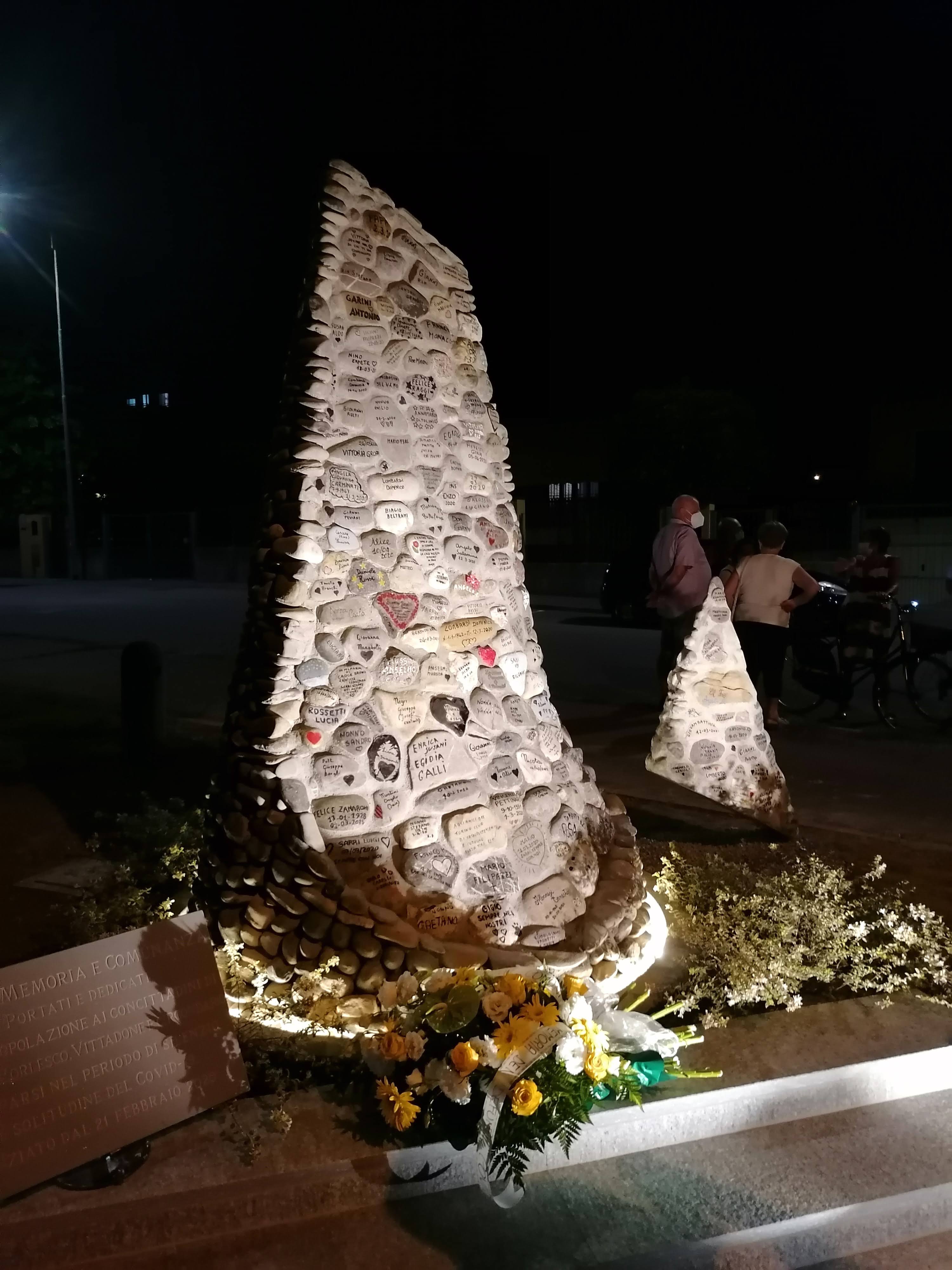 Casalpusterlengo ha voluto ricordare i suoi morti per Covid con un monumento che è un’installazione popolare composta da sassi di fiume, bianchi e lisci, eretta in un luogo simbolico per tutti i casalini, il Mortorino. Lì sorsero il primo nucleo del paese e la prima chiesa con il cimitero annesso, in cui furono sepolte in passato le vittime di altre epidemie.