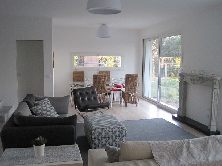Garavaglia srl ha costruito una villa dal gusto minimale, caratterizzata architettonicamente da volumi essenziali e forme decise, in cui la luce naturale è protagonista. Tecnologicamente la struttura è stata realizzata con telaio portante in cemento armato, setti perimetrali in termo laterizio, cappotto isolante, solaio di copertura in legno lamellare a vista con getto collaborante, copertura in alluminio naturale, serramenti di grandi dimensioni in alluminio, scala a giorno in pietra, impianto di riscaldamento a pannelli radianti con centrale termica ad alta efficienza, pannelli solari per l’acqua calda sanitaria e pannelli fotovoltaici per la produzione dell’elettricità, impianti elettrico e di allarme con i più alti standards di domotica, ventilazione meccanica controllata, climatizzazione canalizzata, pavimento interno in parquet plancia, porte raso muro scorrevoli e rivestimenti dei bagni in pietra naturale.