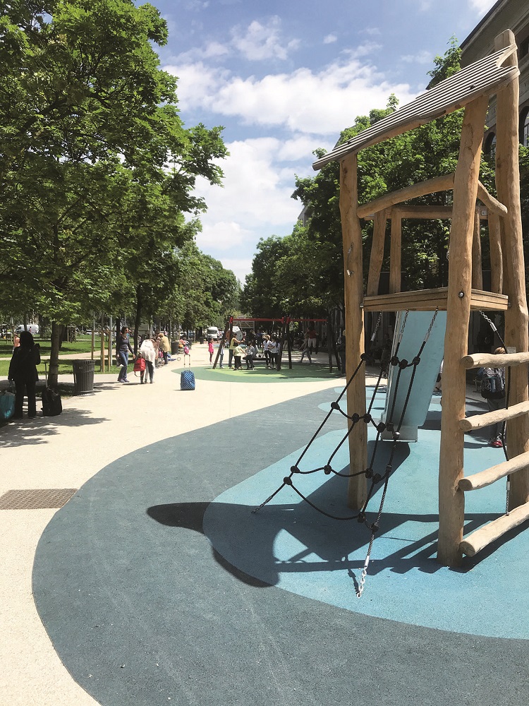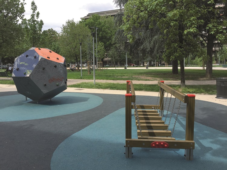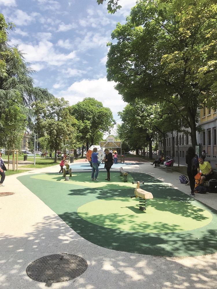 Piazza Leonardo Da Vinci, Milano: intervento di riqualificazione della piazza, compresi sostituzione degli arredi, rifacimento aree giochi e opere a verde, eseguito a scomputo degli oneri di urbanizzazione primaria relativi all’intervento edilizio di Via Ampère 56