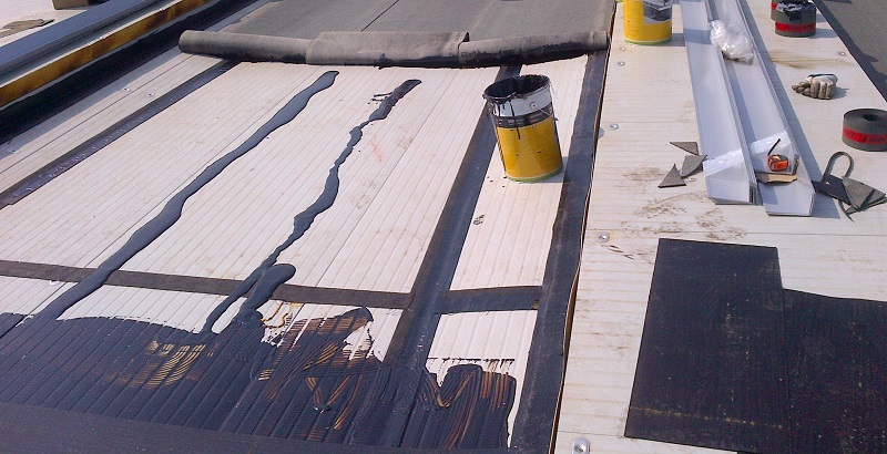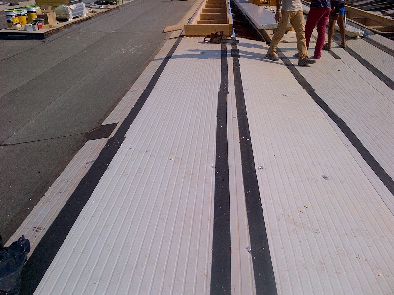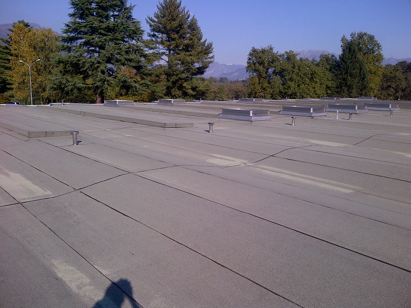 Dopo un’attenta analisi, il nuovo pacchetto Derbigum ha previsto la rimozione del pacchetto esistente e del pannello isolante ormai inefficace, poiché totalmente imbibito d’acqua.