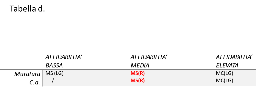 • Metodo semplificato MS(LG), indicato per una valutazione speditiva della classe di Rischio ma applicabile SOLO agli edifici in muratura.