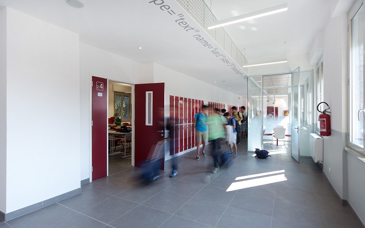 Si tratta di una struttura scolastica eco-green con centrale di riscaldamento geotermica e illuminazione a risparmio energetico. La realizzazione ha ottenuto menzione d’onore nell’edizione 2016 del concorso la Ceramica e il Progetto di Confindustria Ceramica.