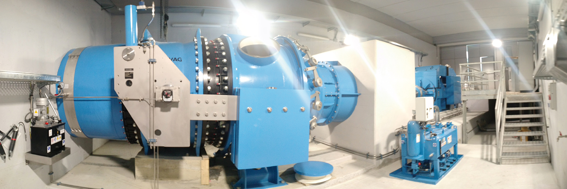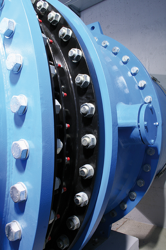 Nel 2015, VAG ha contribuito alla realizzazione della centrale idroelettrica di Maen, collaborando con Eaux Valdôtaines Srl, gestore dell’impianto, fornendo una valvola a farfalla VAG EKN® DN 1800 PN 6 con azionamento idraulico a leva e contrappeso, in grado di chiudere rapidamente sotto flusso per proteggere la turbina. La valvola è connessa alla condotta di monte, con un giunto adattatore di flangia dedicato per tubi in vetroresina VAG VARIplus DFA, più flessibile, assorbe le vibrazioni della turbina, a valle invece con un giunto VAG VARIplus DJ, rapido da installare rispetto al giunto a tre flange.